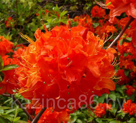 Сорт с широкой, приподнятой кроной. После 10 лет достигает высоту 100 см. Цветки оранжево-красного оттенка с сочным оранжевым пятном на верхнем лепестке, собраны в шаровидные соцветия. Края лепестков волнистые. Морозостойкость: до -30.