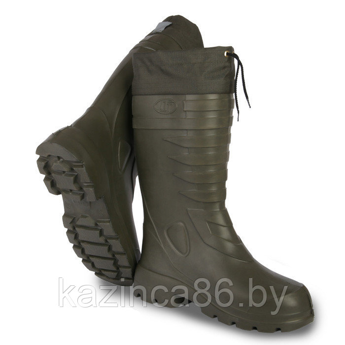 Очень легкие. Средний вес пары всего около 900 гр. Сапоги снабжены манжетой из водооталкивающей ткани с утягивающимися завязками против попадания внутрь сапог мелкого мусора и влаги и укомплектованы вставным мягким утеплителем из ворсового нетканого материала, дублированного фольгированной мембраной.